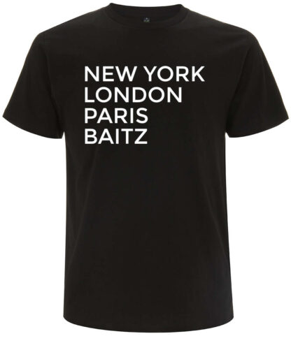 Aufschrift: New York – London – Paris – Baitz