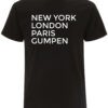 Aufschrift: New York – London – Paris – Gumpen