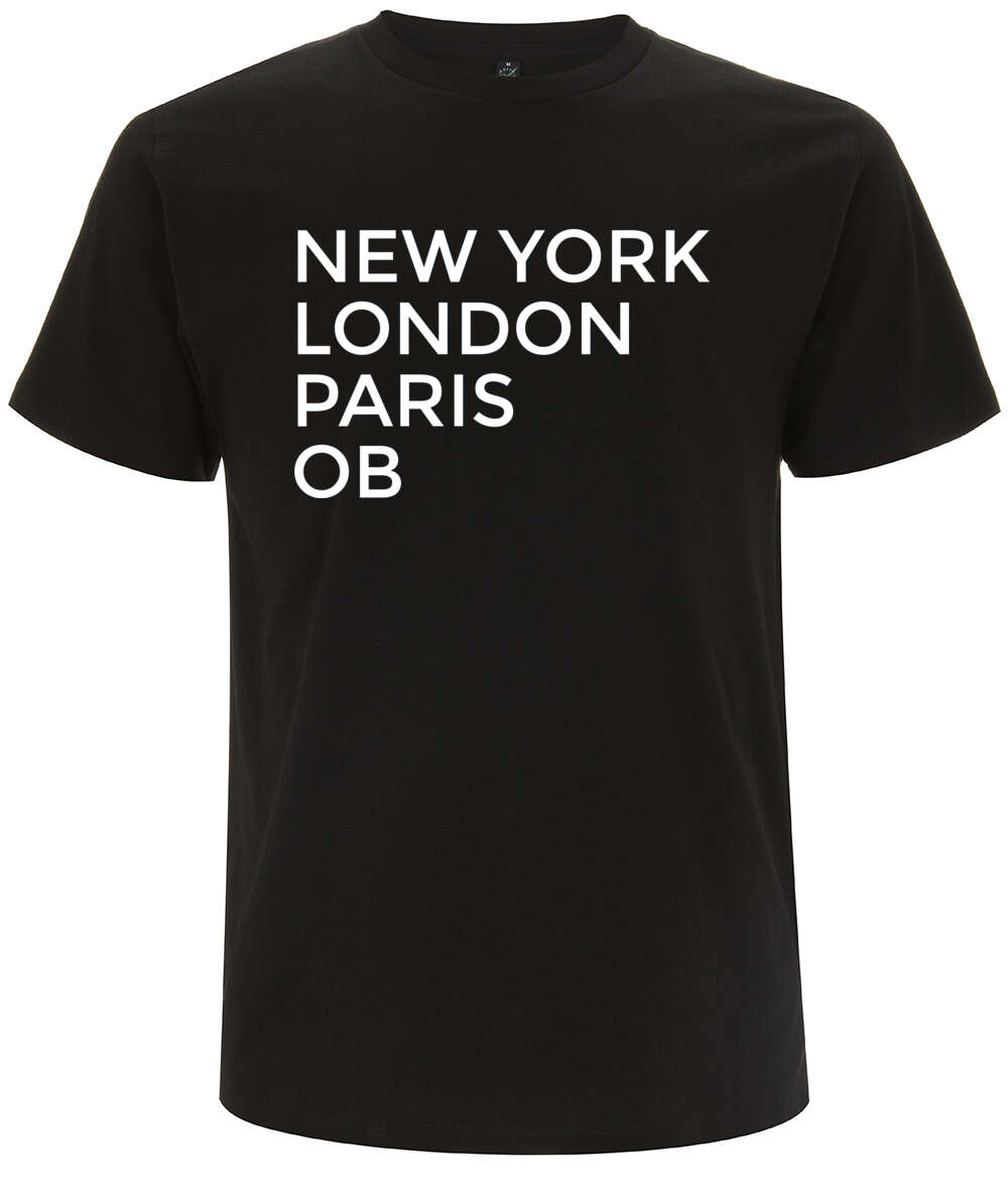 Lustiges Ob T-Shirt aus hochwertiger Bio-Baumwolle, bedruckt in Deutschland. Mit dem Ob T-Shirt zeigst du der Welt, dass Ob für dich in einer Reihe mit den wichtigsten Metropolen der Welt steht! Das Ob T-Shirt ist auch als Geschenk perfekt geeignet.