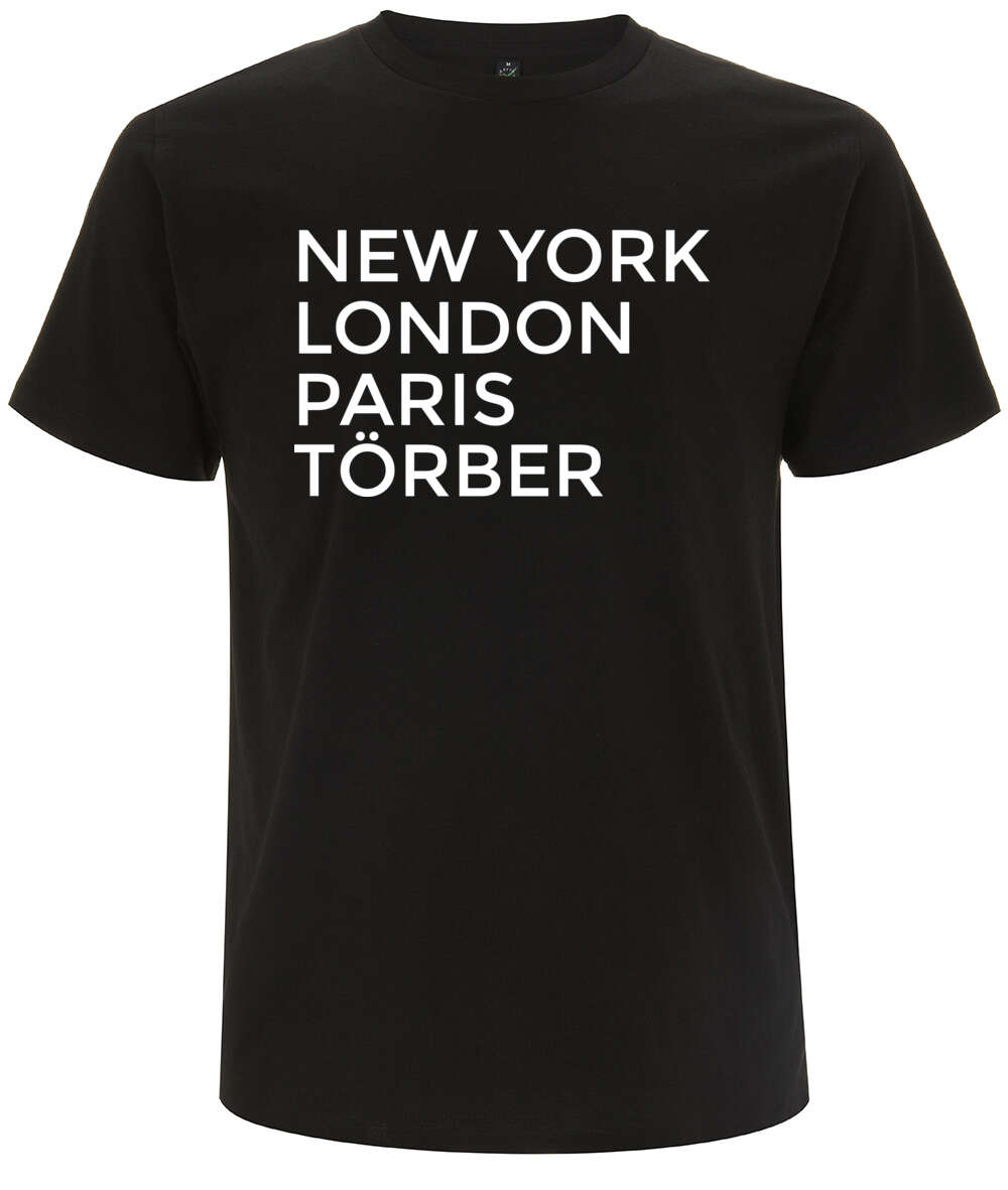 Lustiges Törber T-Shirt aus hochwertiger Bio-Baumwolle, bedruckt in Deutschland. Mit dem Törber T-Shirt zeigst du der Welt, dass Törber für dich in einer Reihe mit den wichtigsten Metropolen der Welt steht! Das Törber T-Shirt ist auch als Geschenk perfekt geeignet.