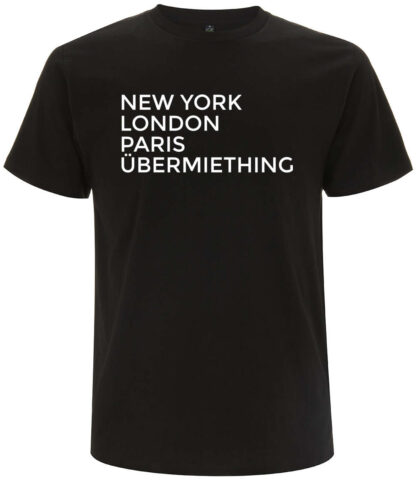 Lustiges Übermiething T-Shirt aus hochwertiger Bio-Baumwolle, bedruckt in Deutschland. Mit dem Übermiething T-Shirt zeigst du der Welt, dass Übermiething für dich in einer Reihe mit den wichtigsten Metropolen der Welt steht! Das Übermiething T-Shirt ist auch als Geschenk perfekt geeignet.